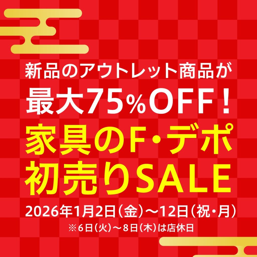 いつも「良い家具お安い」家具のエフデポですが2026年最初のセール「初売り」はさらにメチャメチャお安い!?2026年も家具のエフデポは「良い家具お安く」頑張ります!