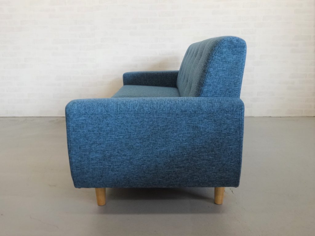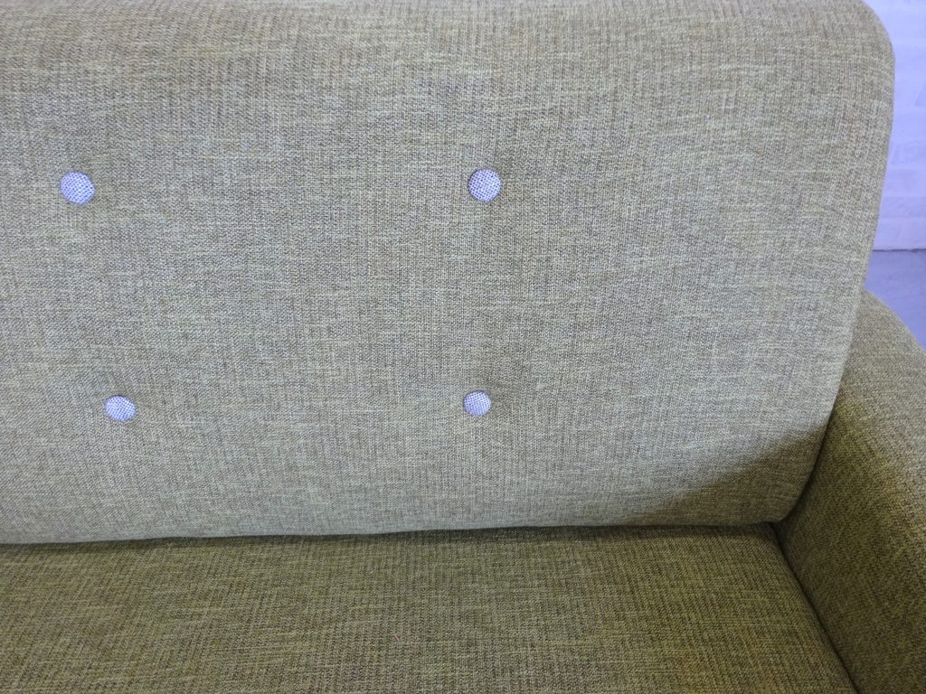 年中快適なファブリック張り・背中のベージュボタンがワンポイント。圧迫感の無いローバック・背中が取り外せて搬入や引越しラクラク